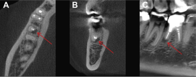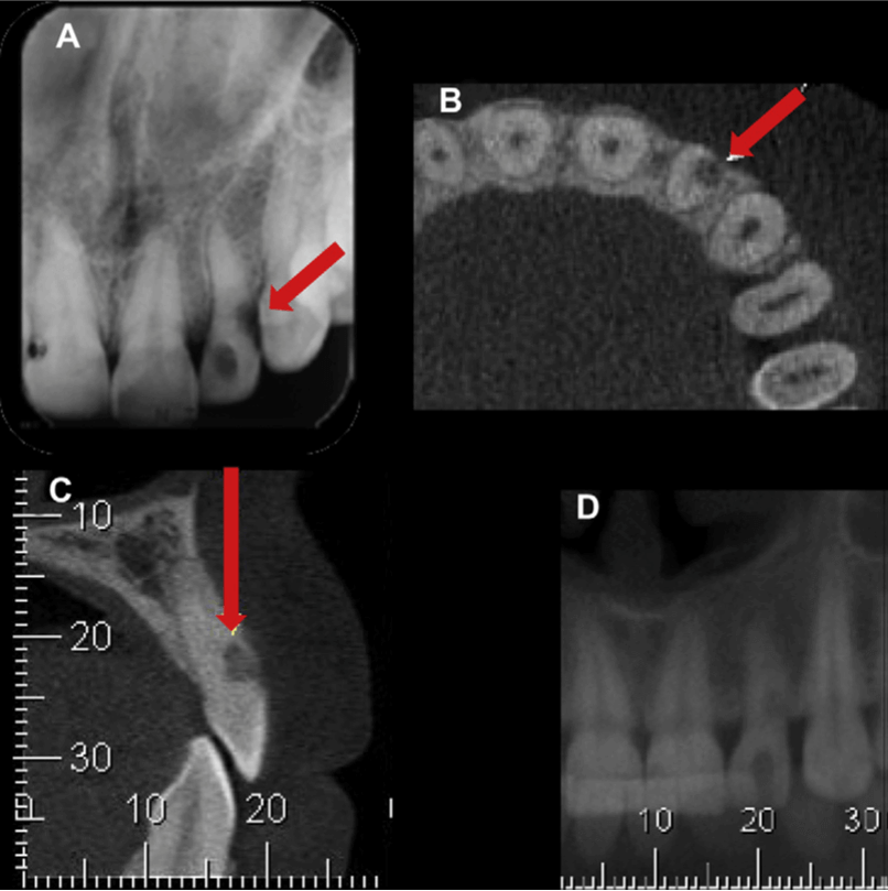 Sin embargo, la reabsorción radicular inflamatorio es una lesión asintomática, lo cual hace más complejo su diagnóstico y tratamiento. El criterio estándar para el diagnóstico de este tipo de reabsorción se da por medio del análisis microscópico. Las imágenes radiográficas convencionales se han utilizado con frecuencia para la detección y seguimiento de la reabsorción radicular inflamatoria. Sin embargo, el acortamiento apical, los defectos dentarios radiculares laterales o cervicales, el agrandamiento del conducto radicular y los defectos radiolúcidos radiculares externos no es posible identificarlos en una evaluación radiográfica en su fase inicial cuando el proceso de reabsorción inflamatoria es discreto, o debido a las limitaciones de las radiografías convencionales conocidas como la distorsión geométrica o la superposición.